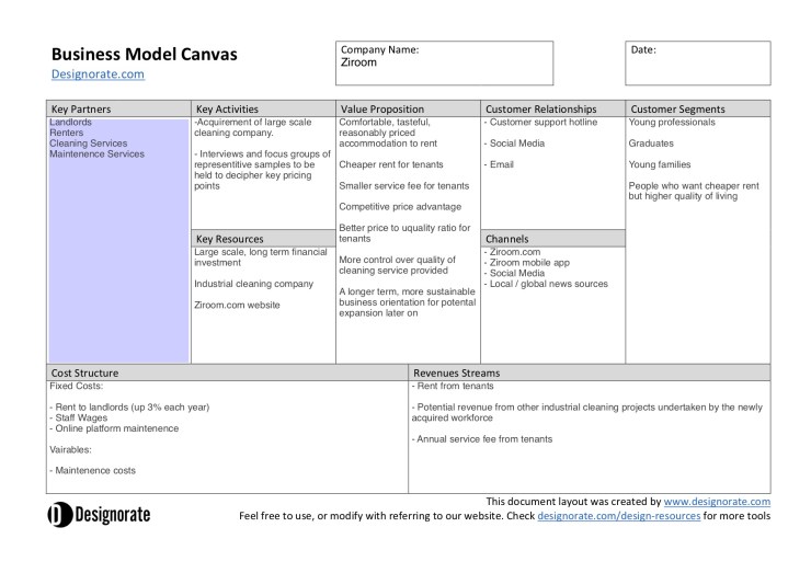 Below is a Business Model Canvas showing 9 of the key areas of a business model, but simplified onto one page. It allows one to visualise a new service and how it will work. It shows the value proposition, key activities, customer segments, key partners, cost structuring, key resources, channels and revenue streams (Osterwalder & Pigneur, 2010)