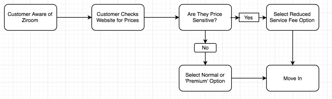 Above is a simplified version of the new and old customer journeys that showcases how this new service offering will help acquire and retain more customers for Ziroom. In the new journey, you can see that by offering a reduced service fee option to more price sensitive consumers, it opens a new pathway to acquisition thus making them more likely to rent with Ziroom rather than continue their evaluation of alternatives stage in the consumer buying process.